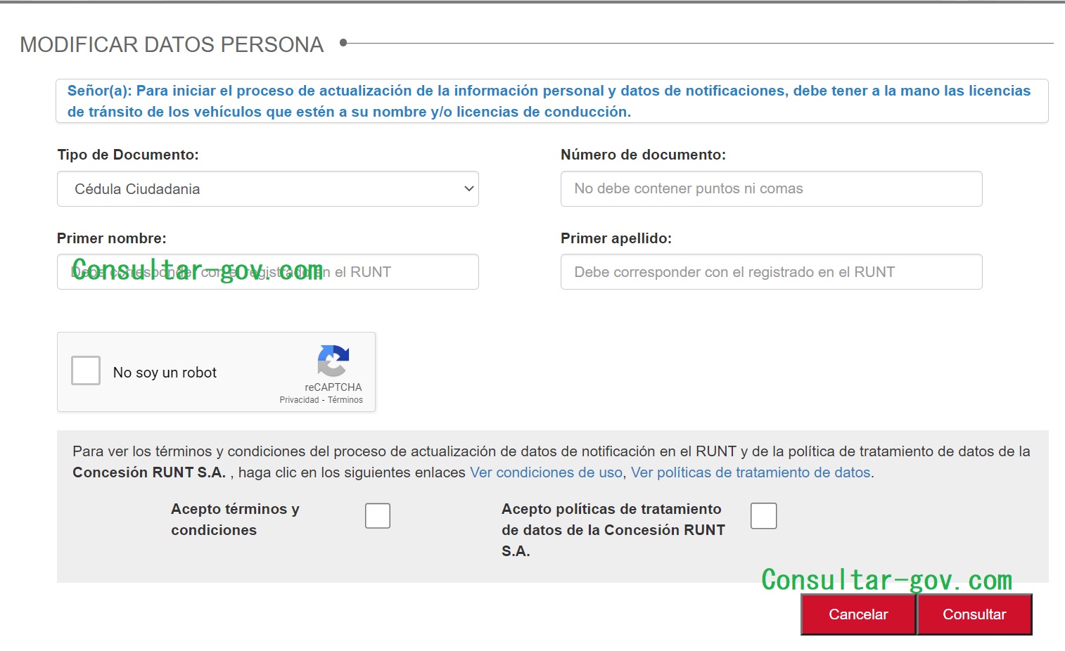El Runt debe ser actualizados por las personas que se encuentren inscritos al mismo y que actualmente se encuentren conduciendo algún vehículo o sean propietario de alguno, esta actualización deberá realizar cuando la persona presente cambios en su domicilio o datos de contacto, frente a los datos registrados inicialmente el Registro Único Nacional de Tránsito, cabe resaltar que el proceso se debe llevar a cabo lo más pronto posible, puesto que en caso de recibir una infracción no tendrá conocimiento de ella y no podrá apelar en caso de que sea necesario.
